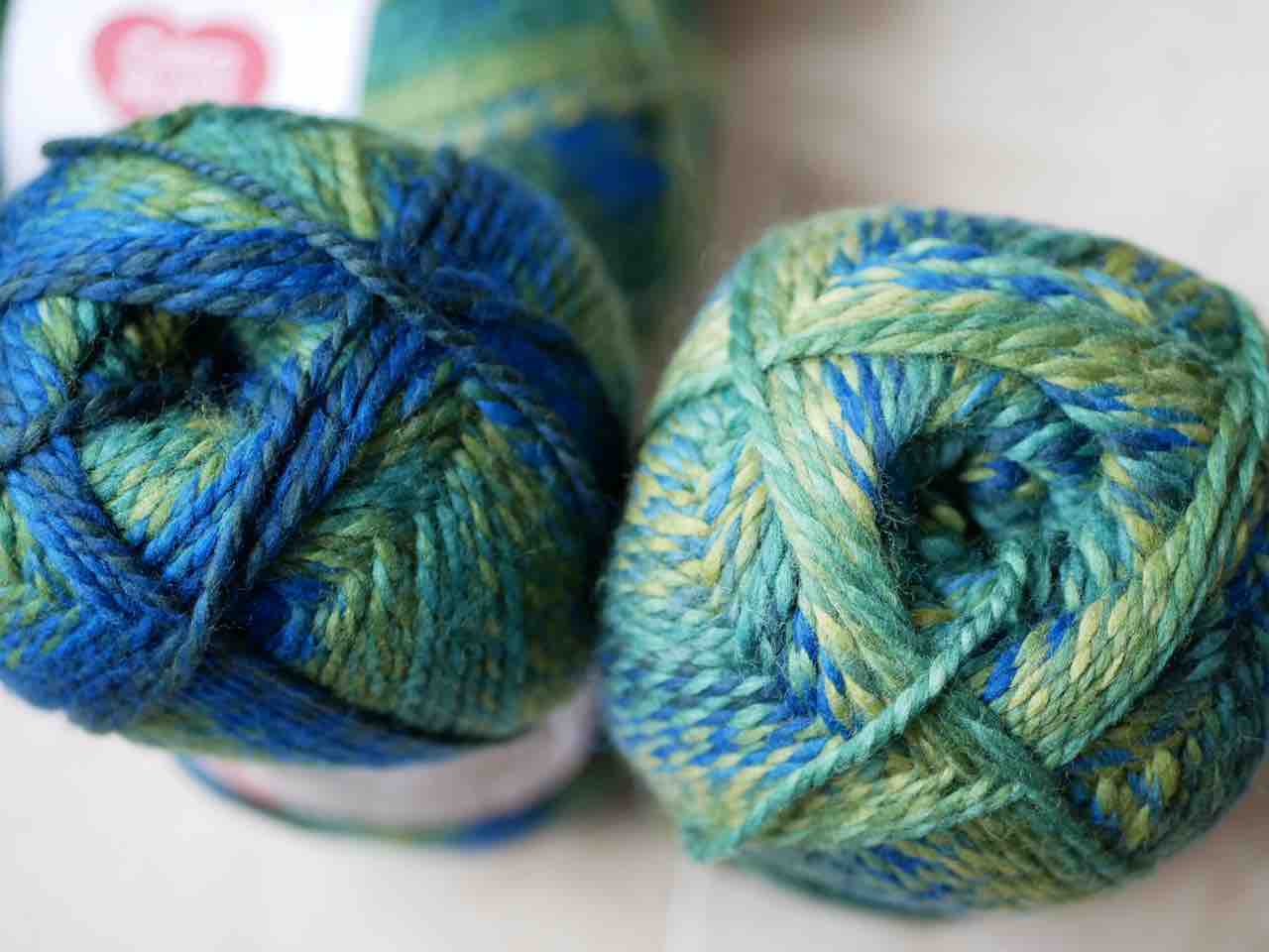 編み地にすると恐らく青の単色が太く現れてくると思います。