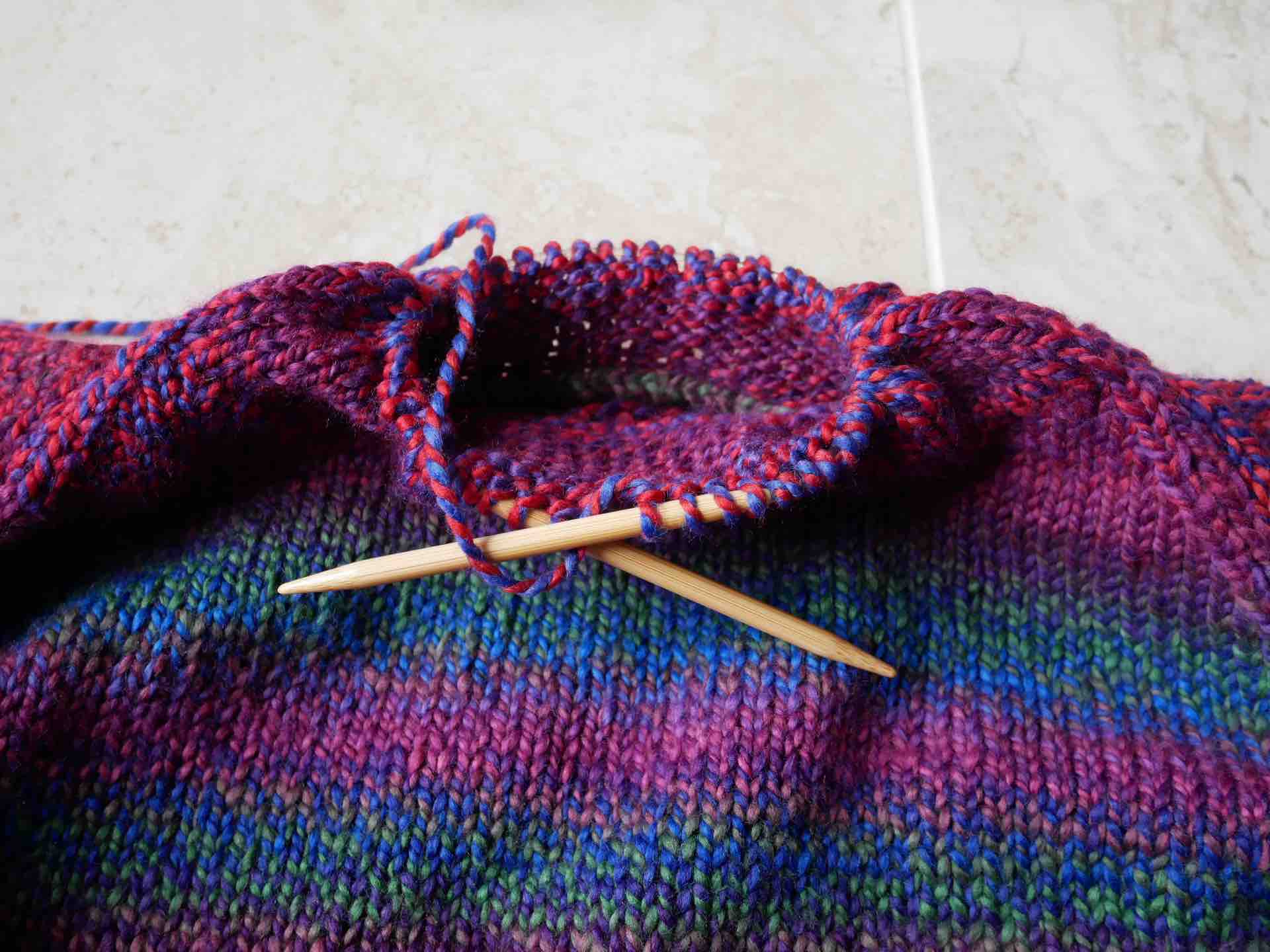 グラデーションヤーンで編んだことで、