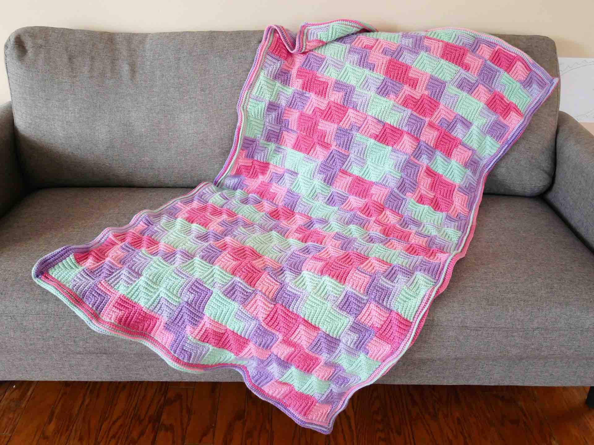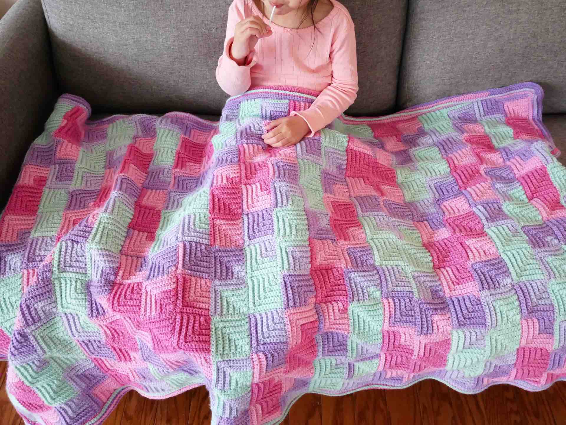 ドミノ編みのブランケット。